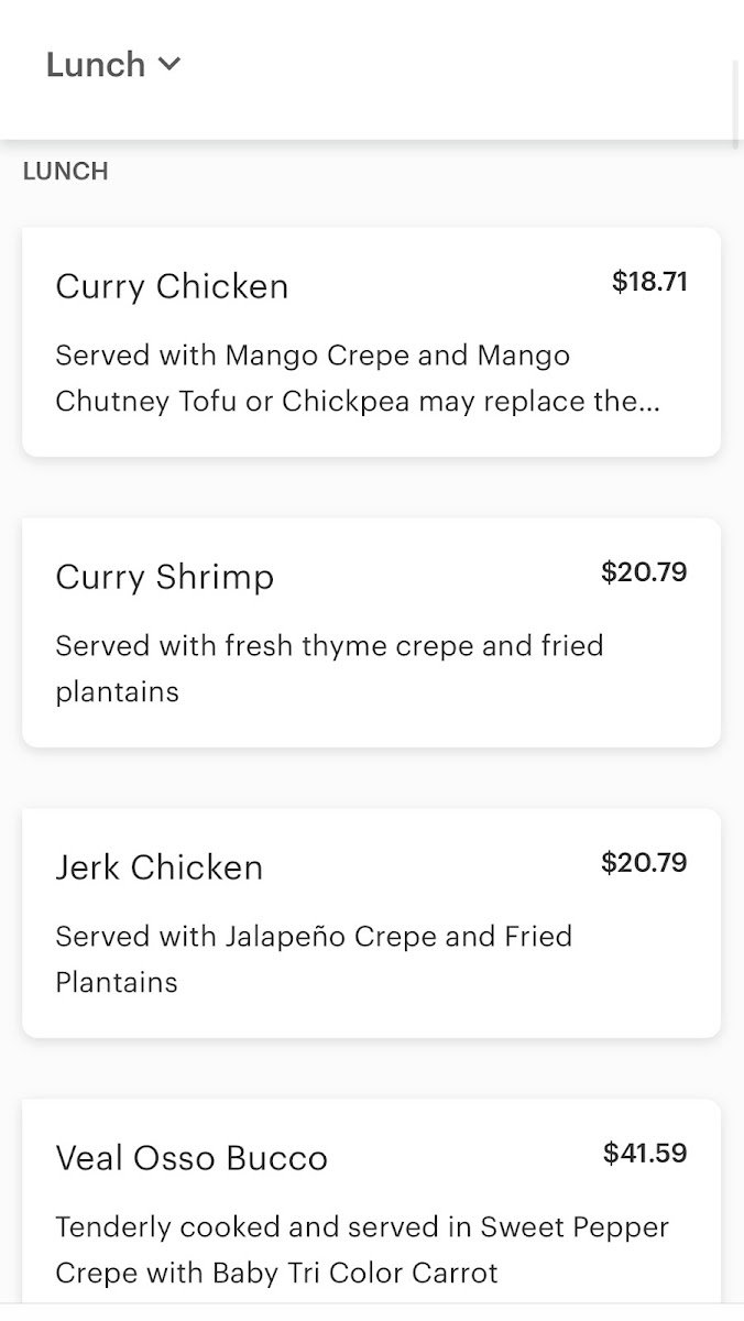 The menu at Crepes Palace stands out for its creative take on crepes, offering both sweet and savory options that promise to satisfy every craving. Whether you are in the mood for something hearty or light, there's something for everyone. Each dish is carefully crafted, using quality ingredients to create a delicious experience. While specific prices are not listed, the offerings are known to provide excellent value for the quality and flavor served.